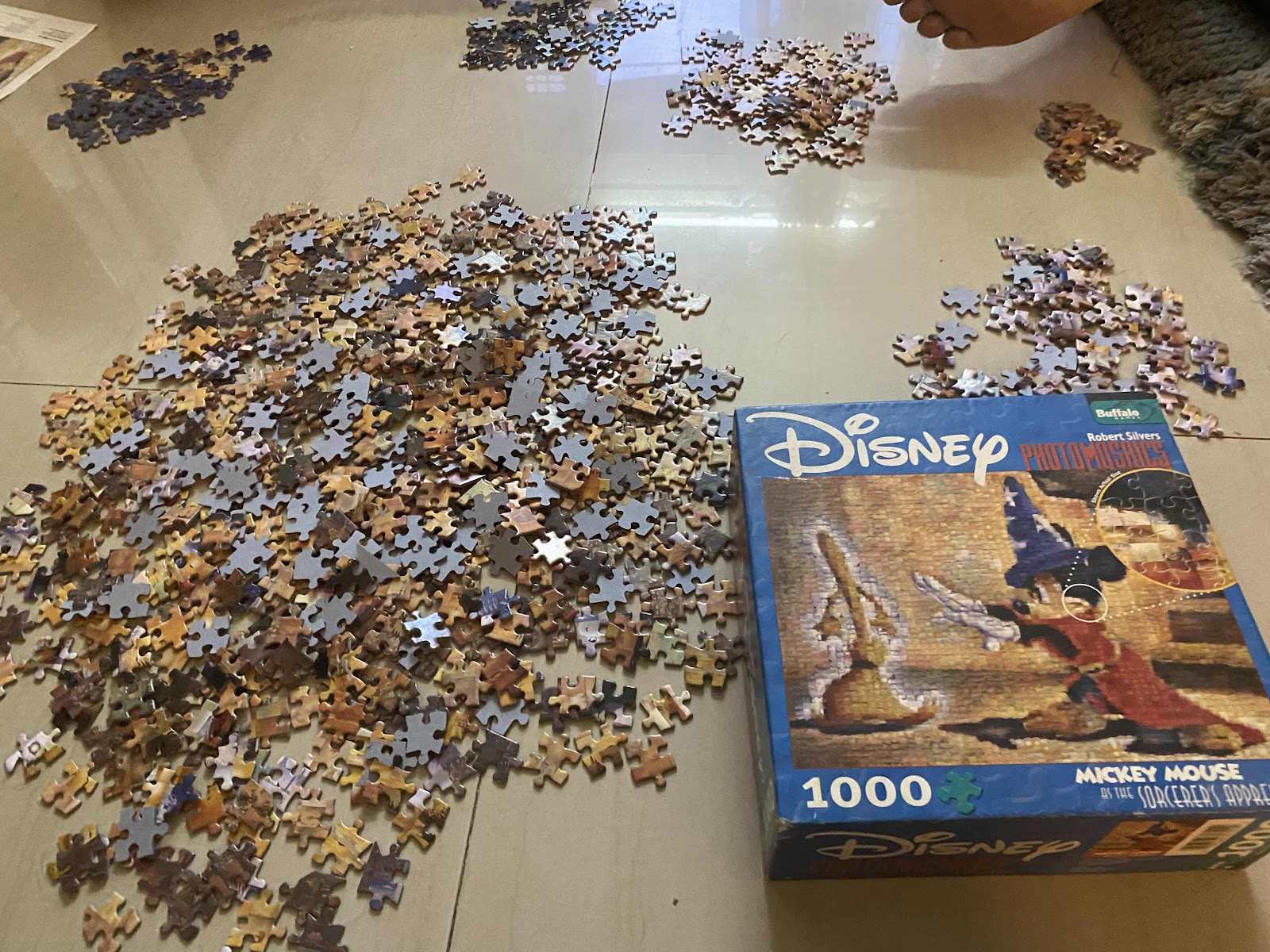 We dug out this Disney puzzle we had - which has never been solved before. I realised my eye sight has gone very poor. I could not see with my current glasses. Have to remove and bring the puzzle pieces very close to see the details. Not good!